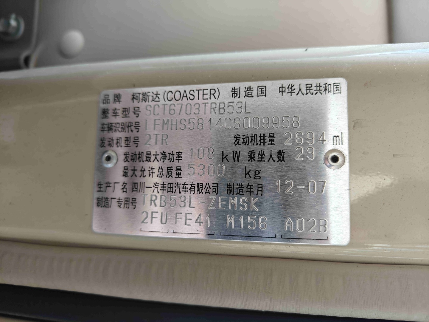 新到2012年8月23座丰田考斯特,折叠门,2TR发动机,机器一点油没有,原汁原味素车一台便宜出售