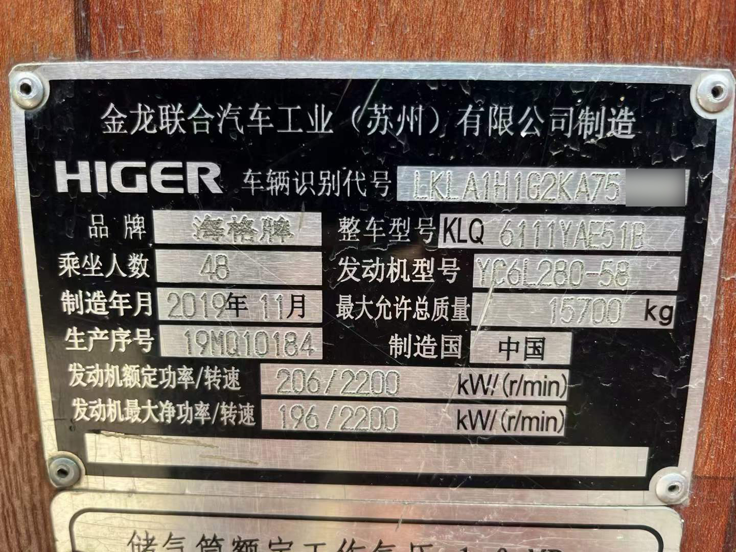 2019年12月上牌海格48座大巴车、旅游客运性质、玉柴280发动机、气囊减震、仿木纹地板、车身板正、带营运公告、一批多台