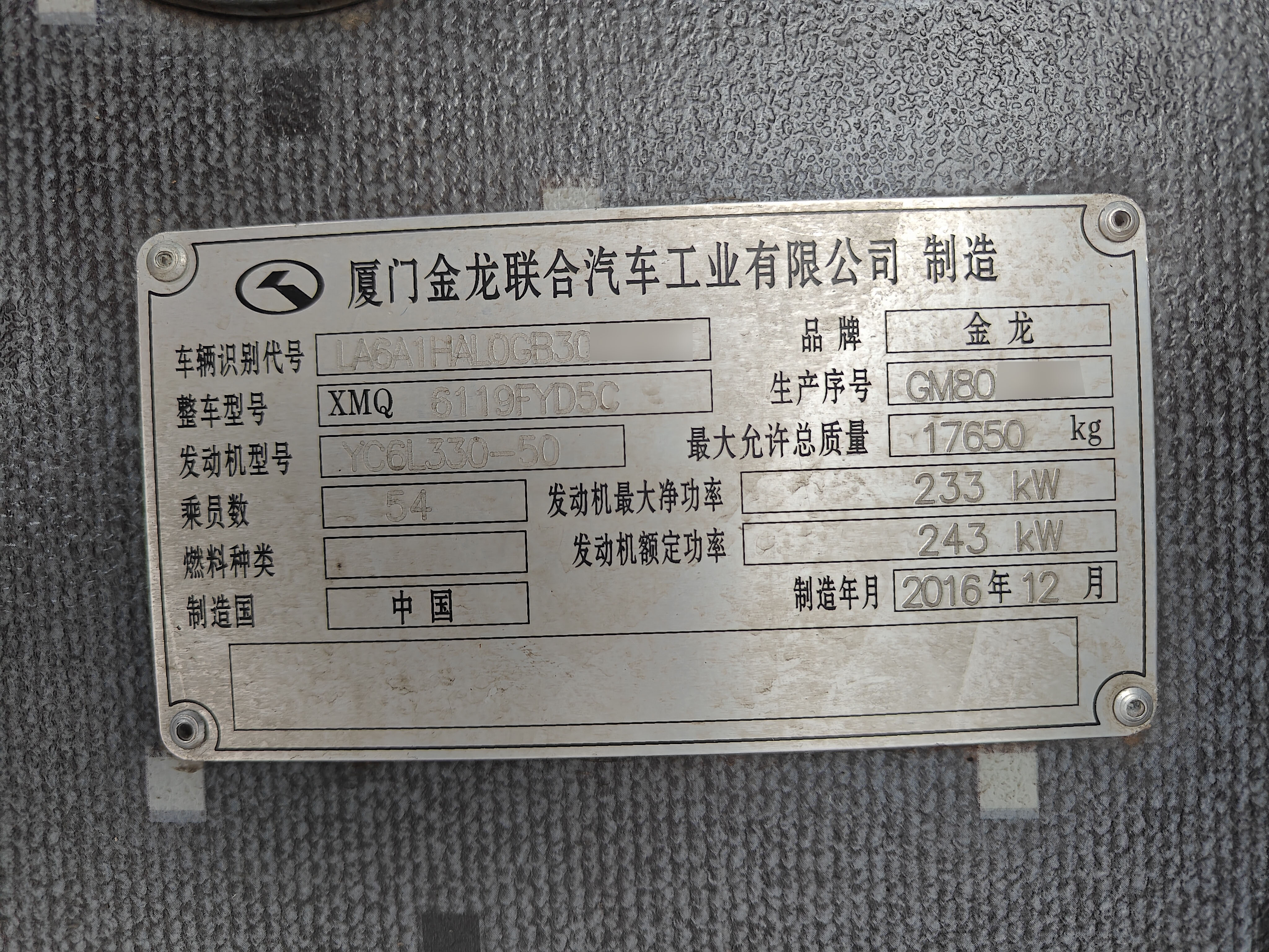 2017年1月54座金龙6119层半车型,旅游客运,35万公里,玉柴330国五排放