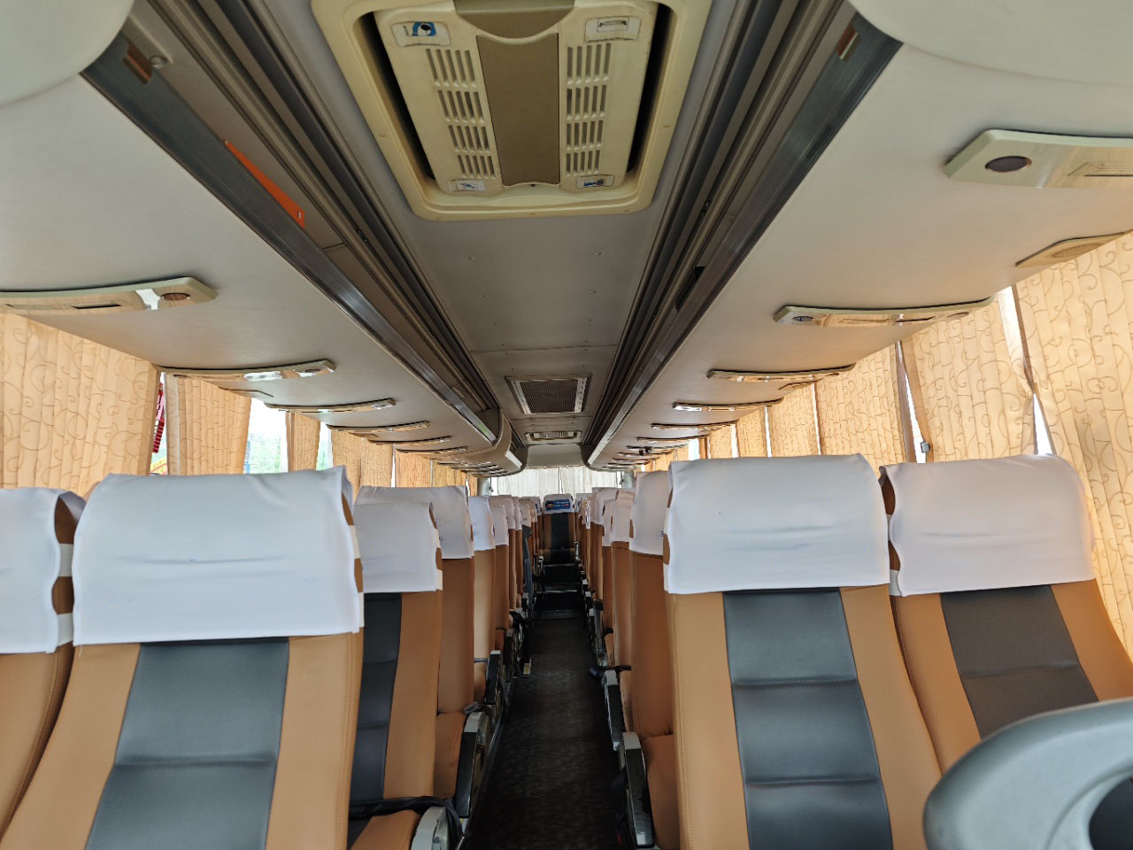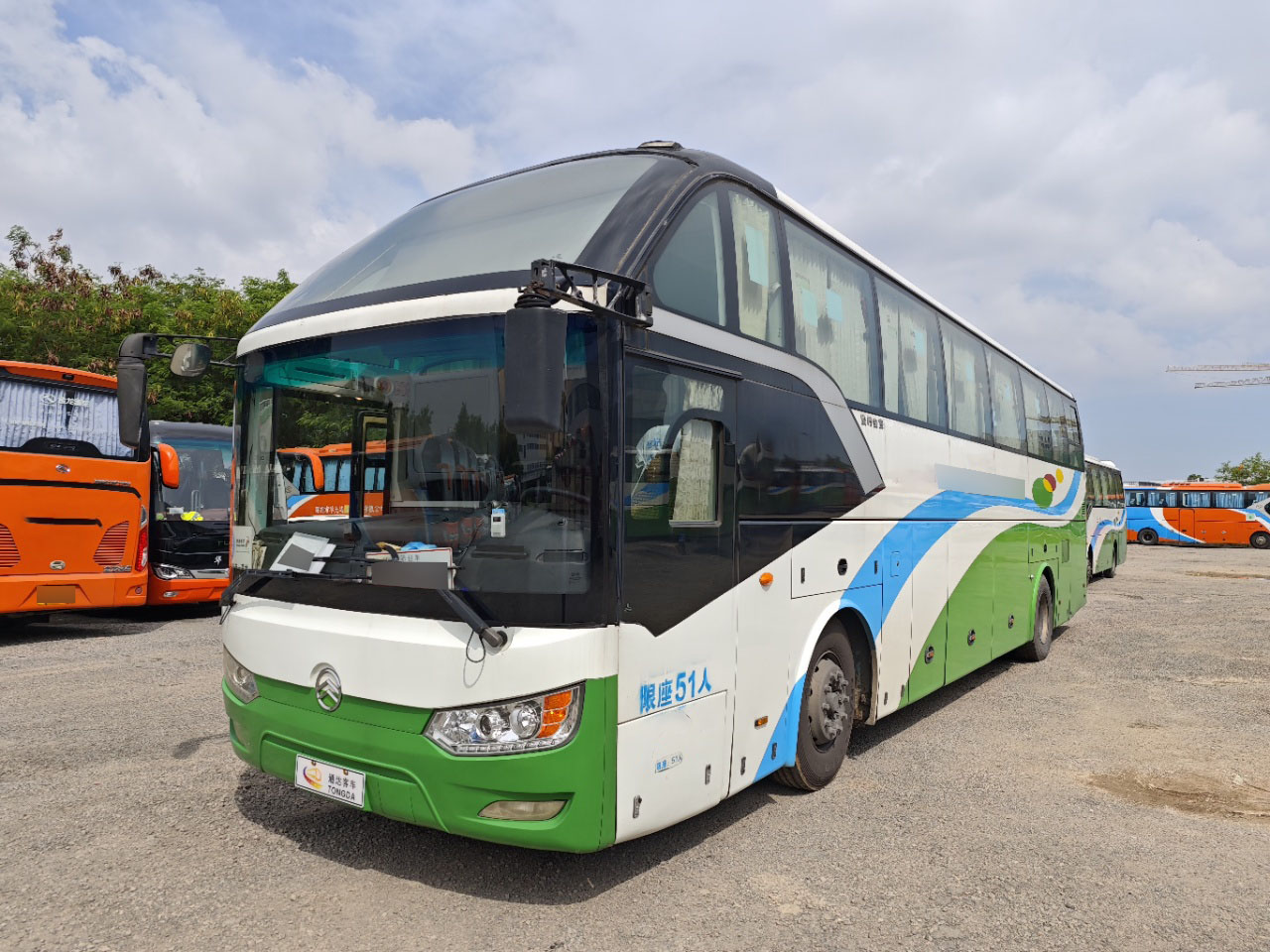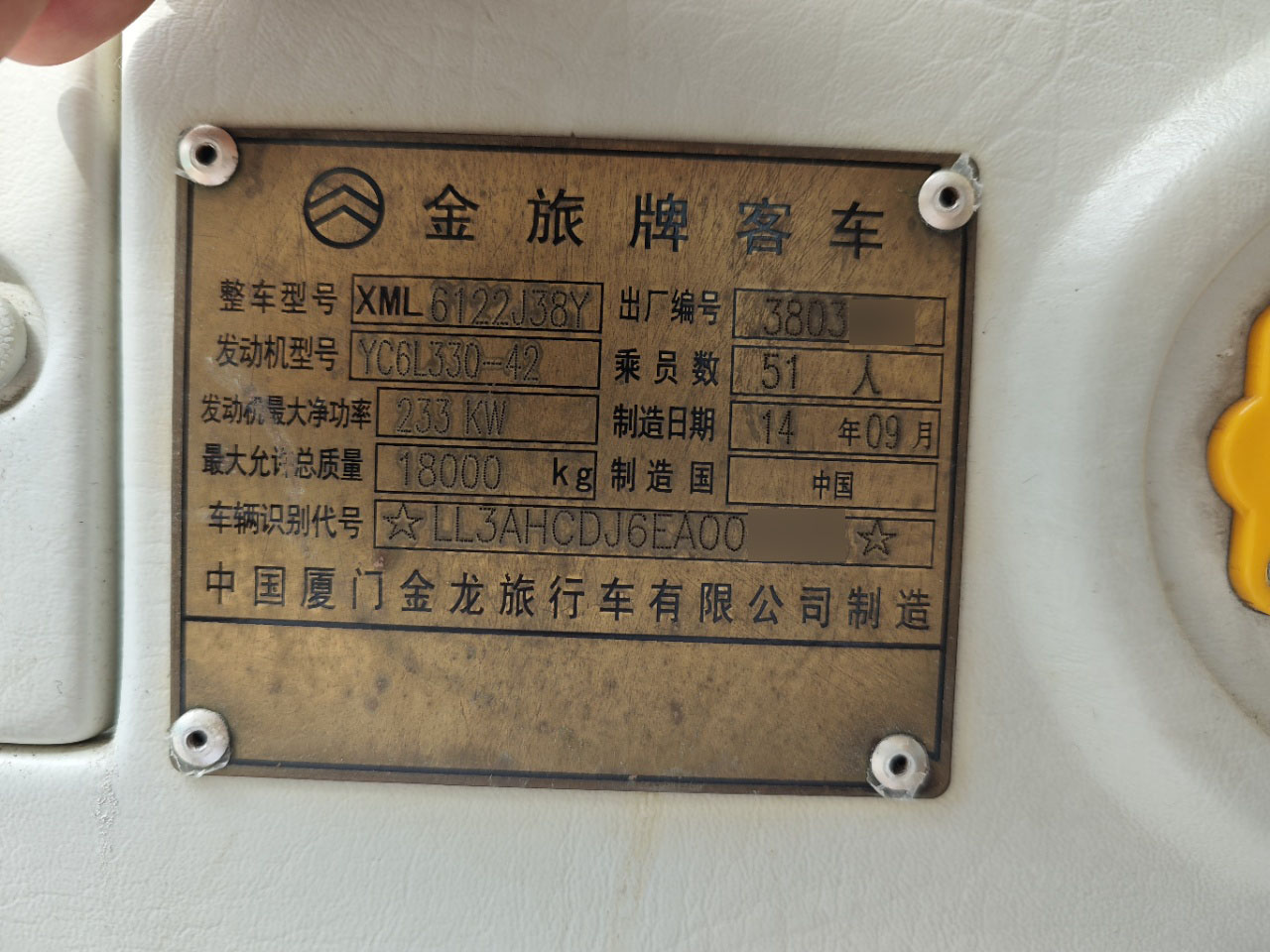 金旅51座斜顶一层半车型,14年10月上牌,旅游客运,座椅新包的,原装出厂地板,基本无磨损,玉柴330国四