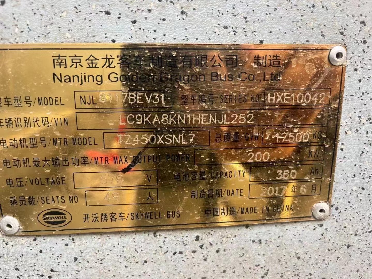 2017年11.12月南京开沃电车48座、旅游客运可营运转籍