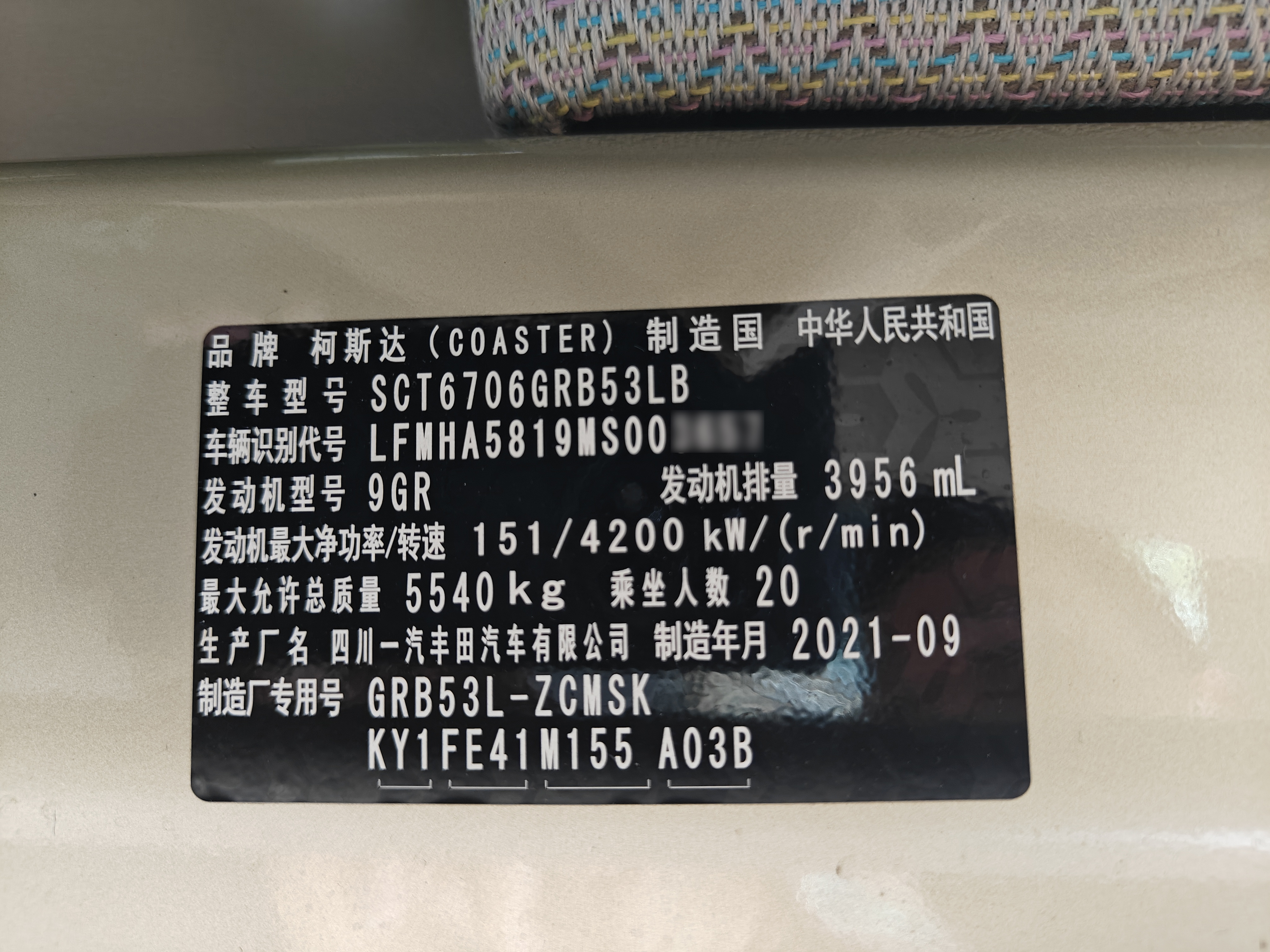 1.品牌型号:丰田考斯特SCT6706GRB53LB