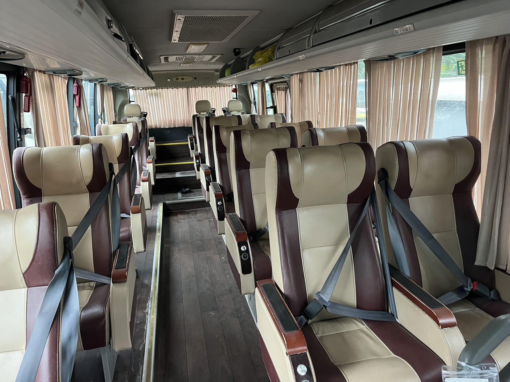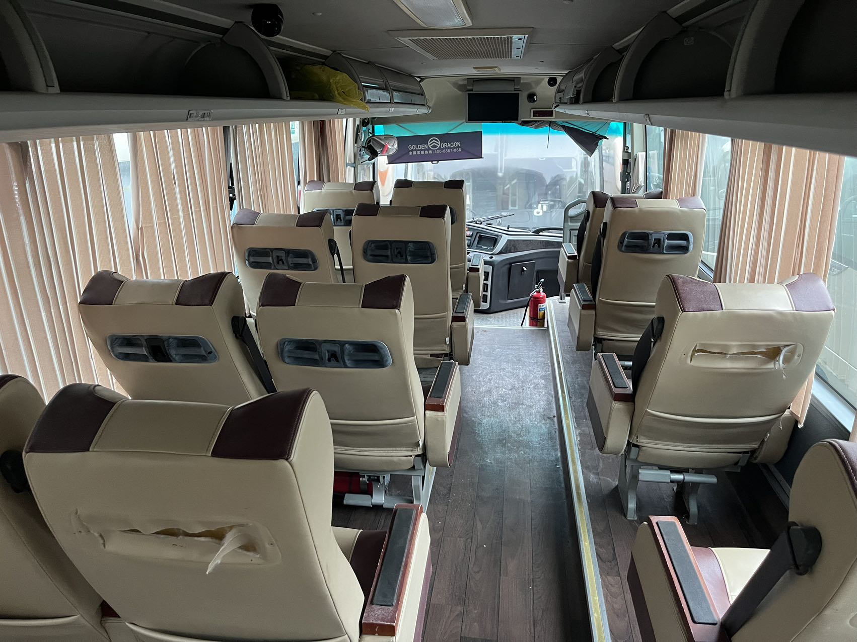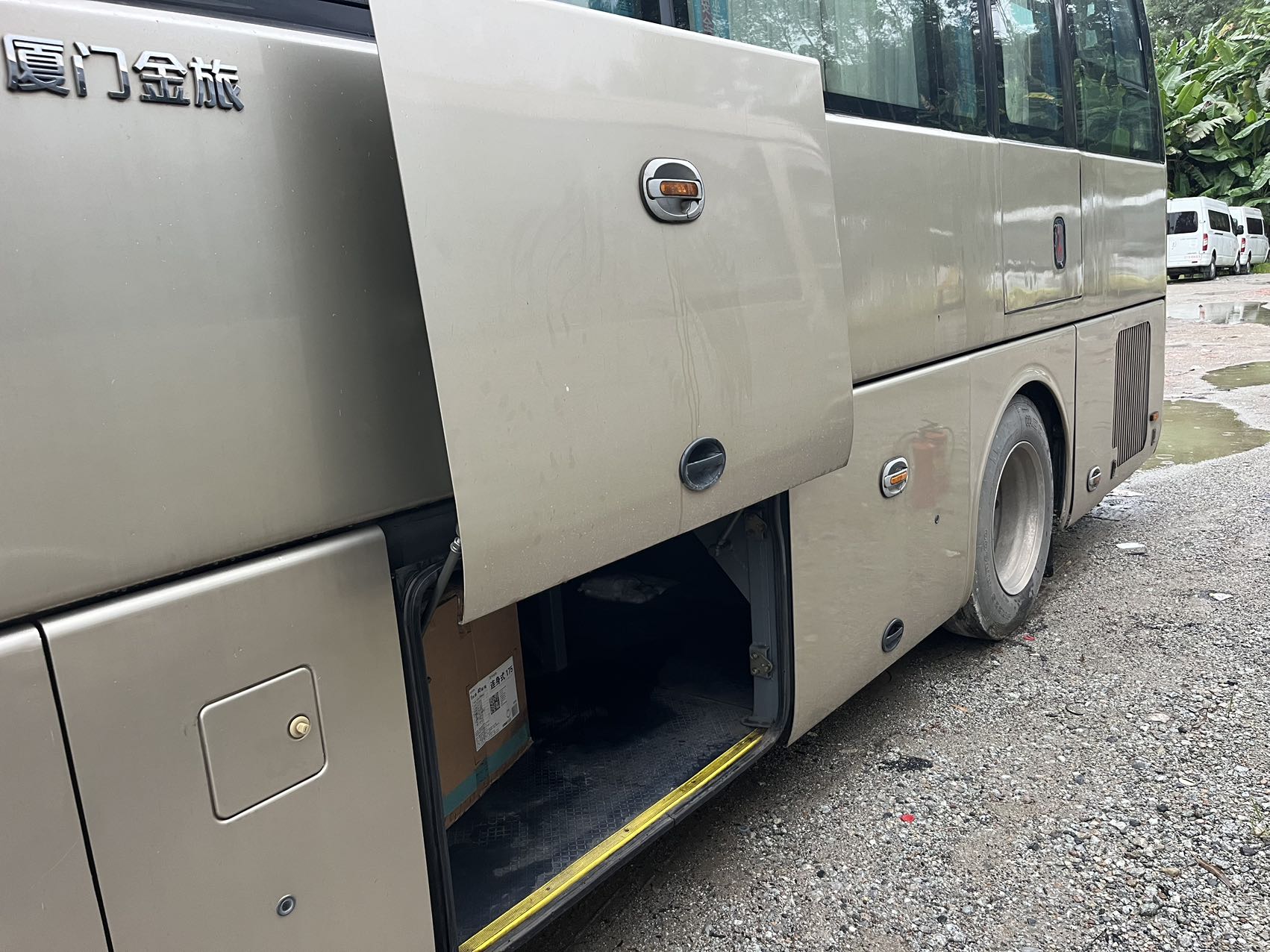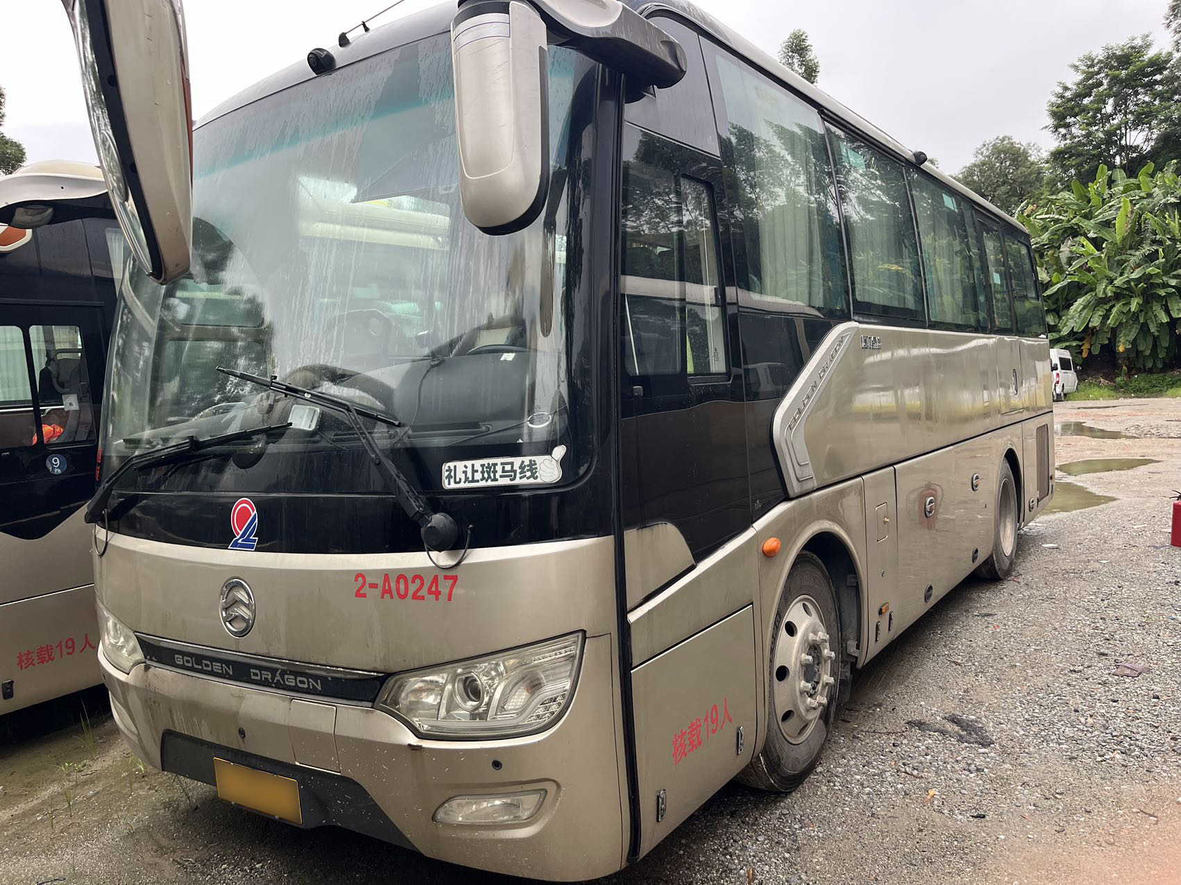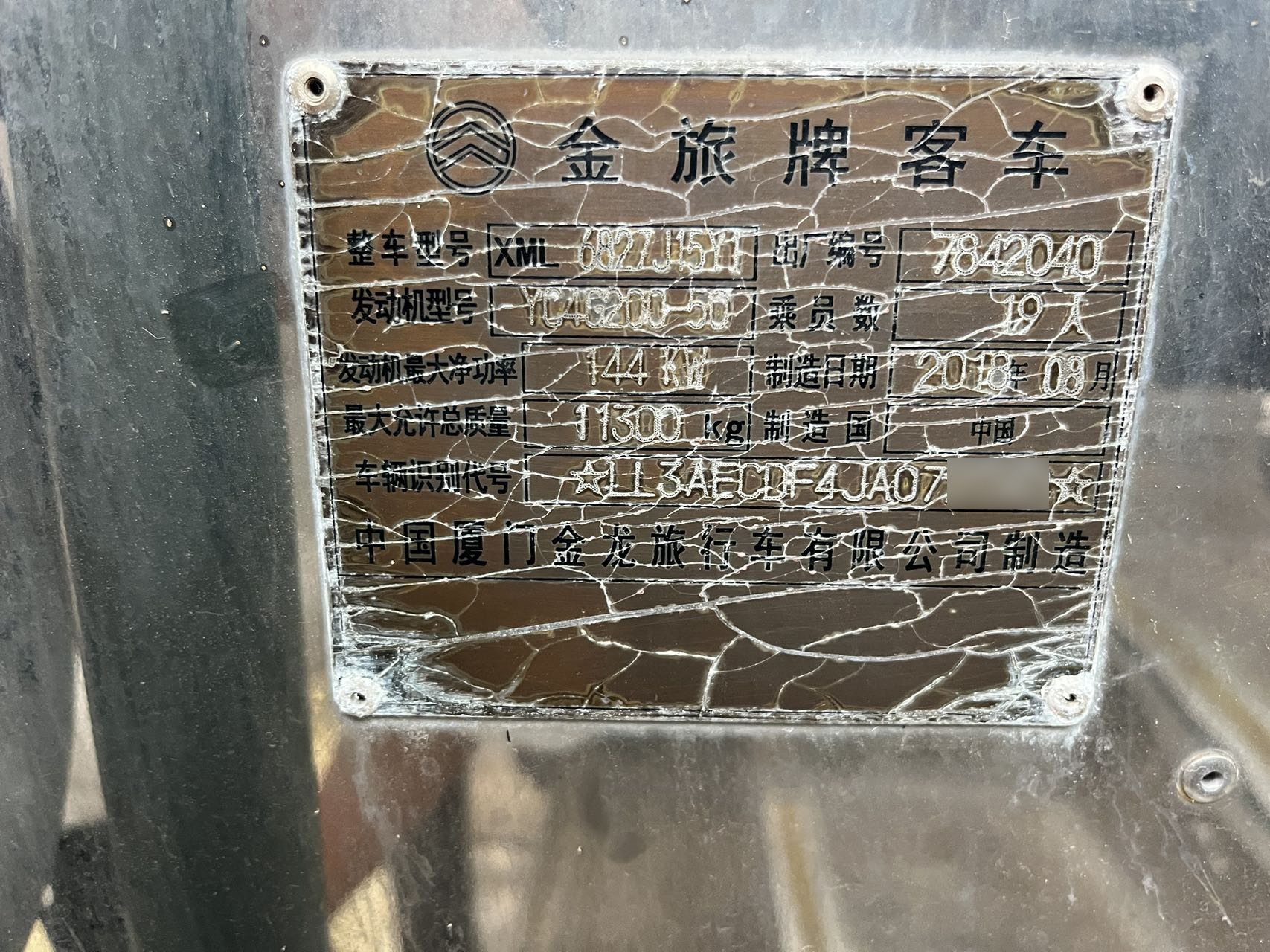 2018年金旅 1.品牌型号:金旅XML6827J15Y1 2.上牌时间:2018年9月 3.核载人数:19座 4.使用性质:旅游客运 5.动力排放:玉柴200马力,国五 6.车辆配置:座椅2+1布局、商务座椅带USB充电接口、单门、四轮碟刹、气囊减震、松芝空调、6速前进档、带缓速器带暖风、仿木纹地板、行李舱门单边自动、铝钢圈、轮胎6-7成新