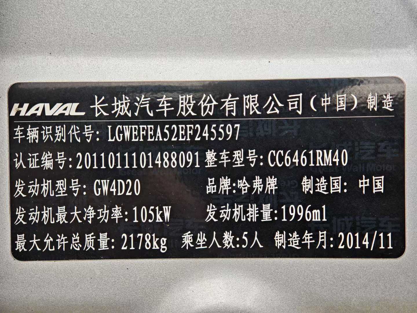 2.上牌时间:2014年12月
