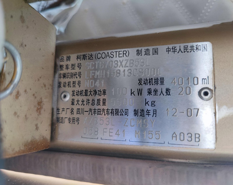 新到同款多台2012年8月丰田柯斯达 20座,旅游客运可办理转籍,柴油4.0国四排放,日野N041发动机,需要的老板电联!
