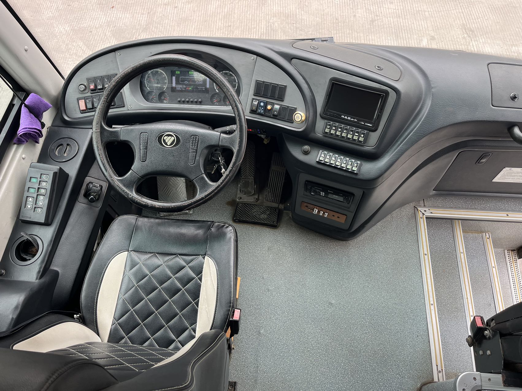 6.其他配置:大巴车、气囊减震、玉柴260发动机、前碟后鼓、双门带脚踏、松芝空调、座椅内饰良好
