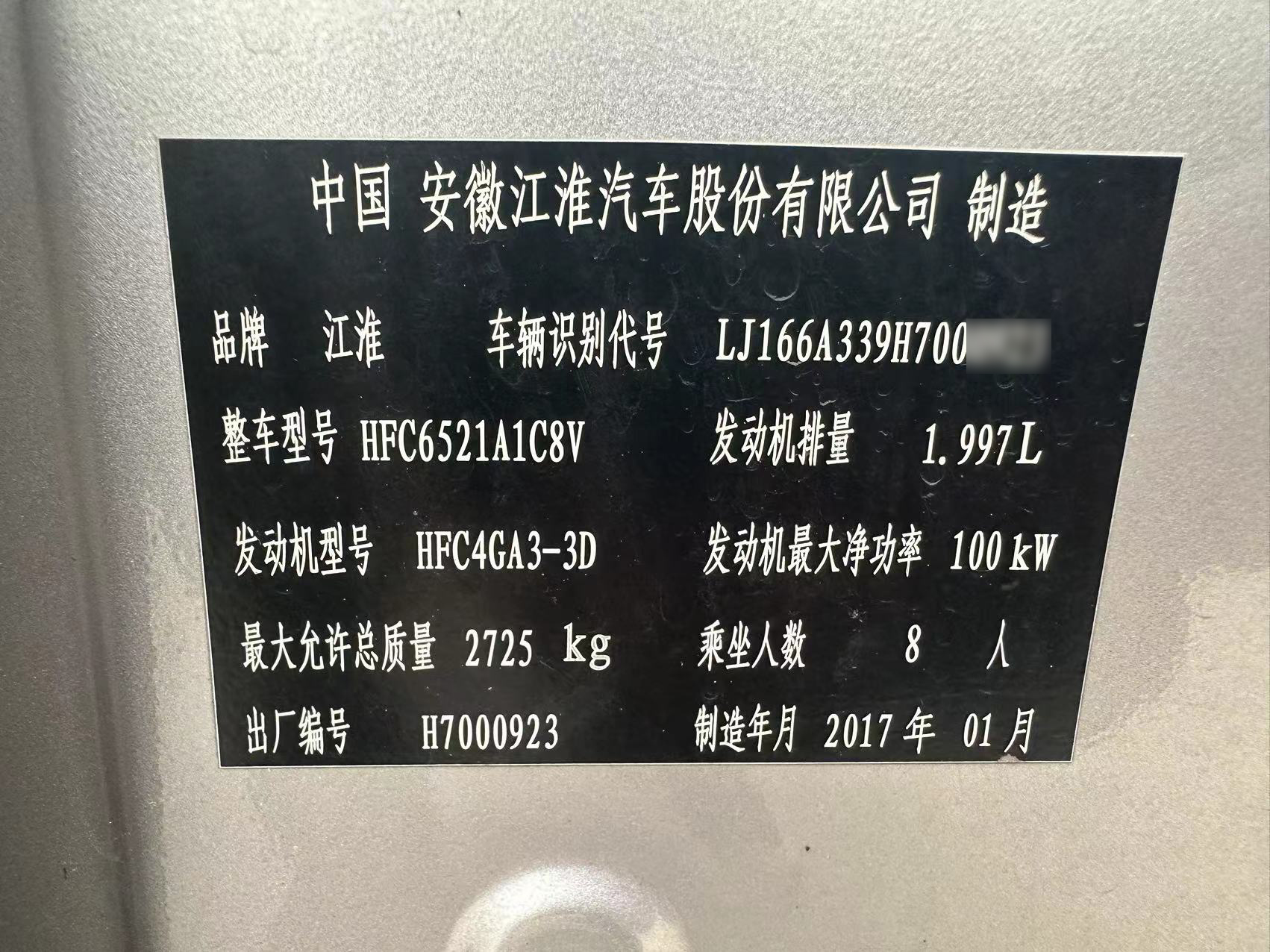 7.车辆配置:白色银色两种,大座车型,绒布座椅,发动机江淮锐捷特2.0排量直列四缸发动机,100KW大功率发动机,一手单位车,国五排放,全国可落