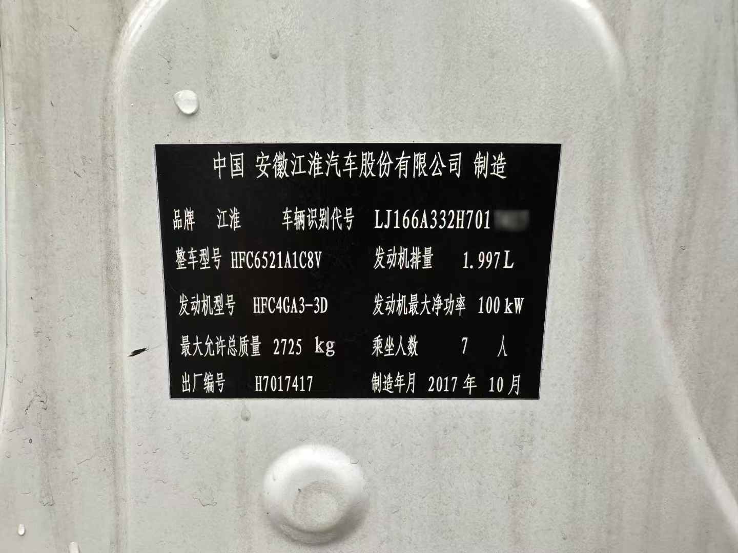 8.车辆配置:白色银色两种,大座车型,绒布座椅,发动机江淮锐捷特2.0排量直列四缸发动机,100KW大功率发动机,一手单位车,国五排放,全国可落