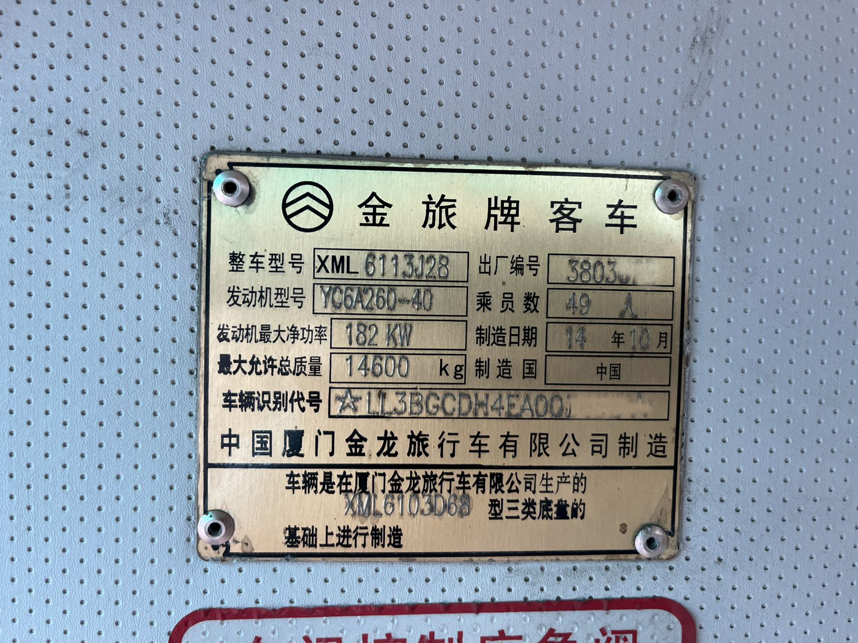新到一批2014年11月金旅6113、49座、非营运、玉柴260发动机、钢板减震、双门、松芝空调、带缓速器、公里数11-20万公里左右。