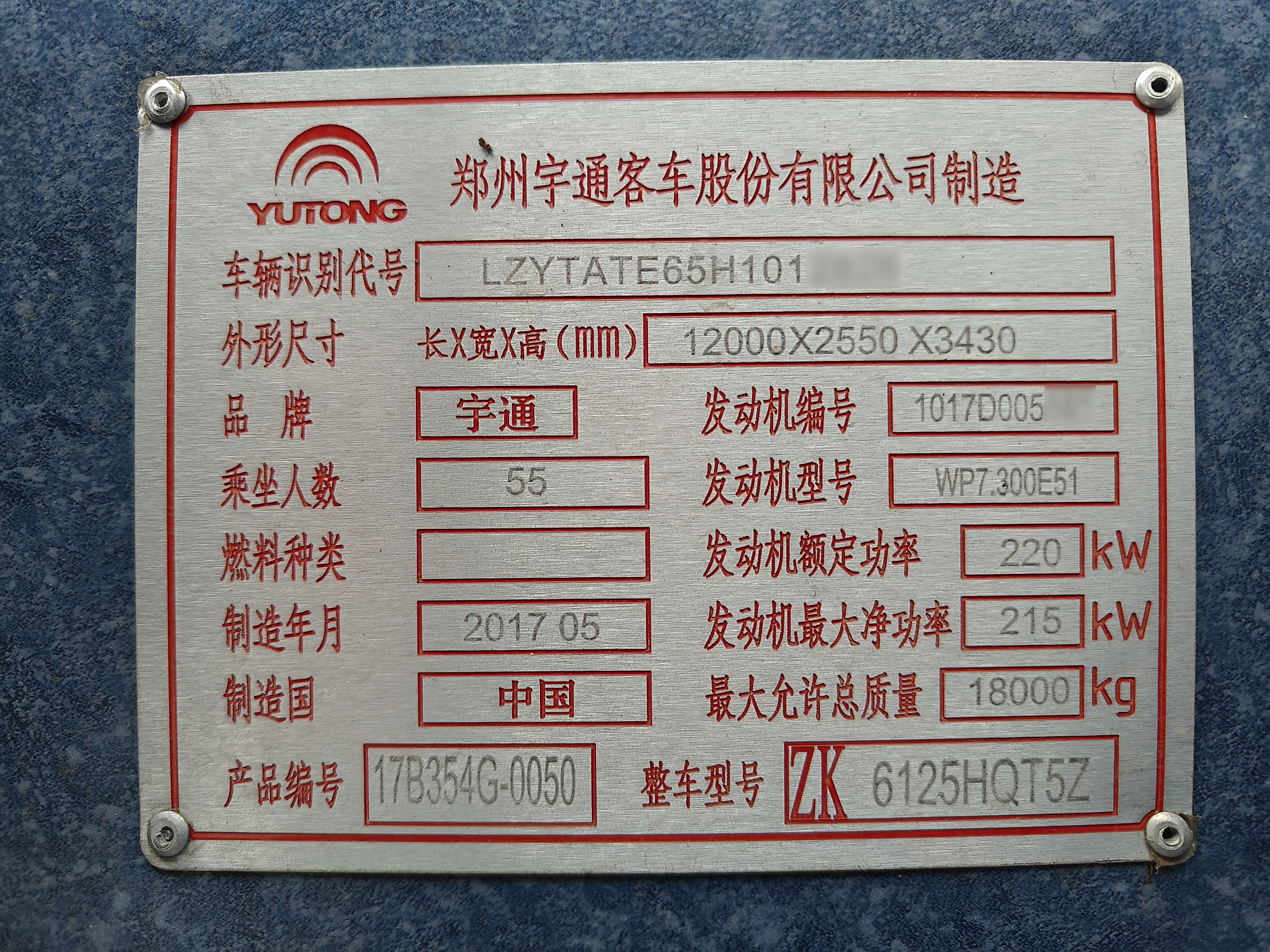 2017年6月宇通55座非营运
