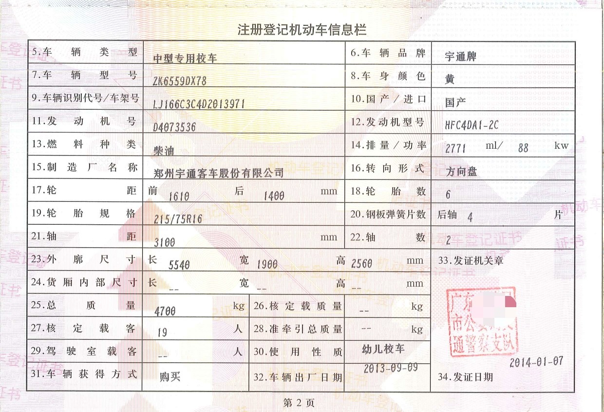 2014年1月宇通19座 幼儿校车